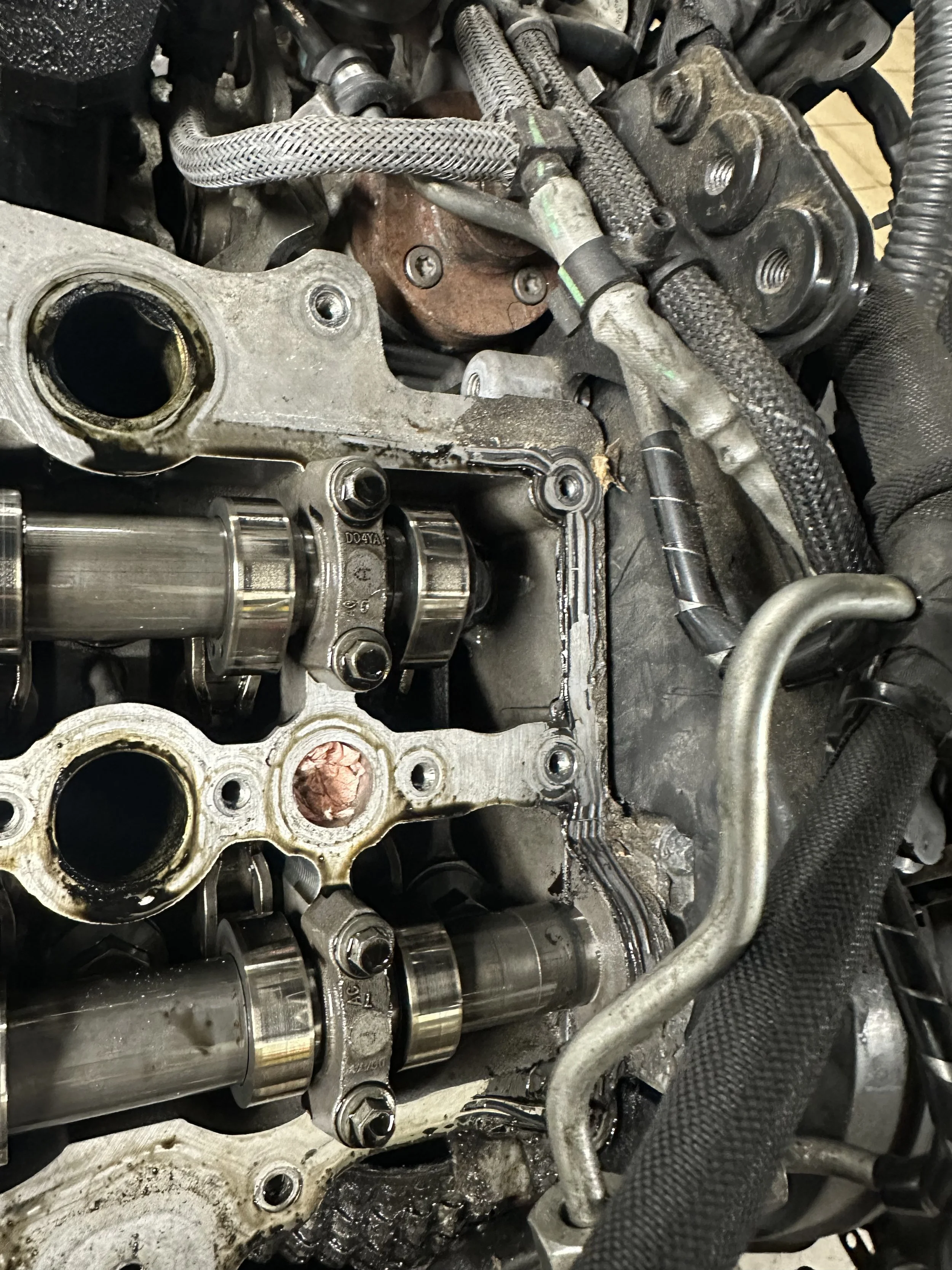 Oilpan fixed with Metallic glue (note not RRRebuilds but obviously should not have been put back)